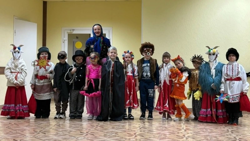 Преподаватель и учащиеся нарядились в яркие, фантастически необычные костюмы и исполнили для своих родителей щедровки, в которых пожелали счастья и благополучия в новом году.